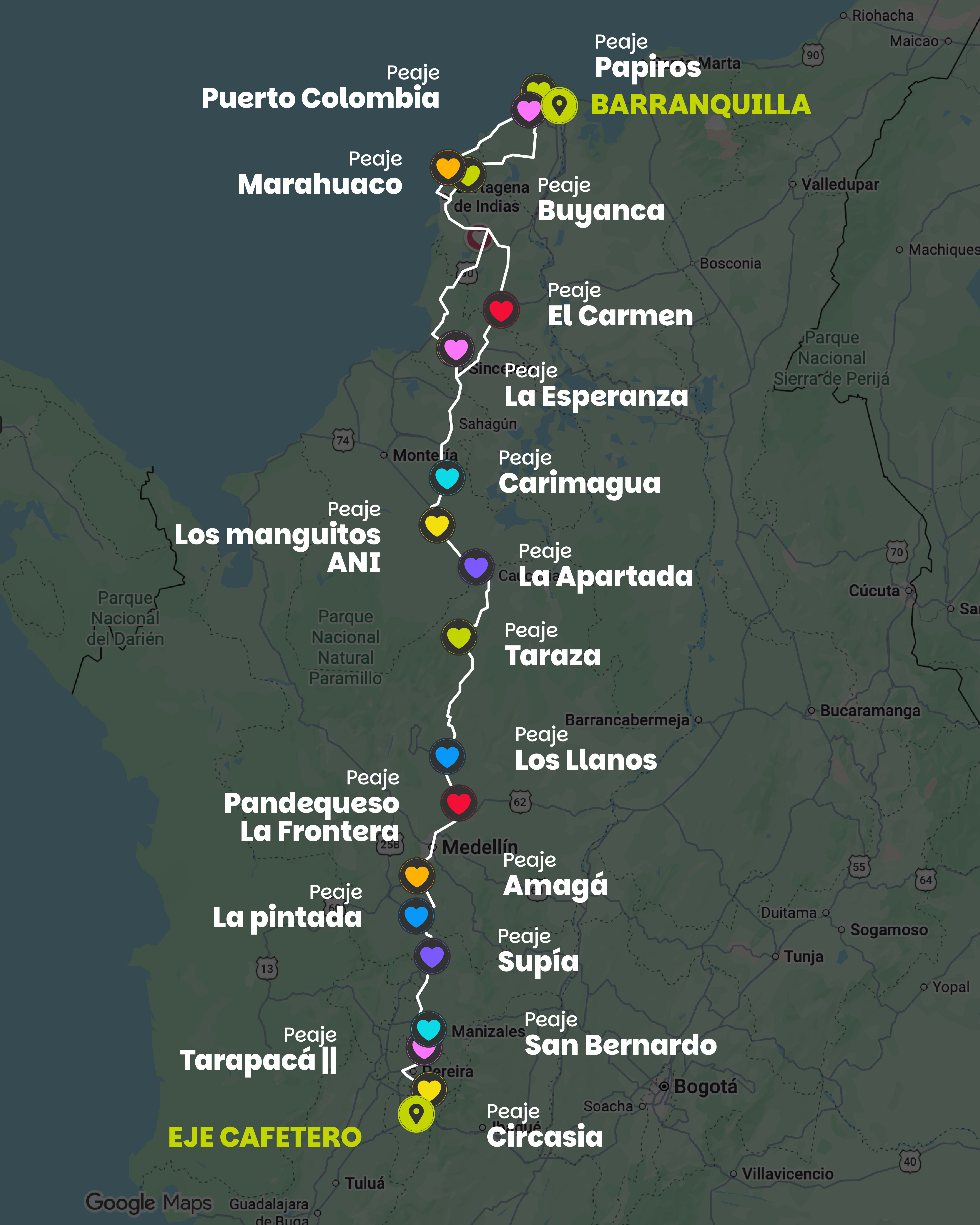 - Tu ruta ideal: Pereira/Manizales – Medellín – Caucasia – Sincelejo – Cartagena – Barranquilla.